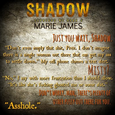 Morrison “Shadow” Griggs, VP of the Cerberus MC, is a force to be reckoned with. Women fall at his feet, willing to do almost anything for a night with him.