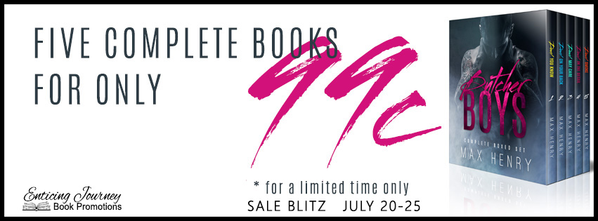Max is the author of dark, and highly emotional romance. Her Butcher Boys series is centered around a group of ex-street kids who have teamed up with an indebted motorcycle club to take down a notorious drug lord. And her new series, the Fallen Aces MC, is a spin-off from this dark and dangerous world. Her writing has been described as ‘gripping’, and ‘addictive’, taking you on an ’emotional roller coaster ride’.