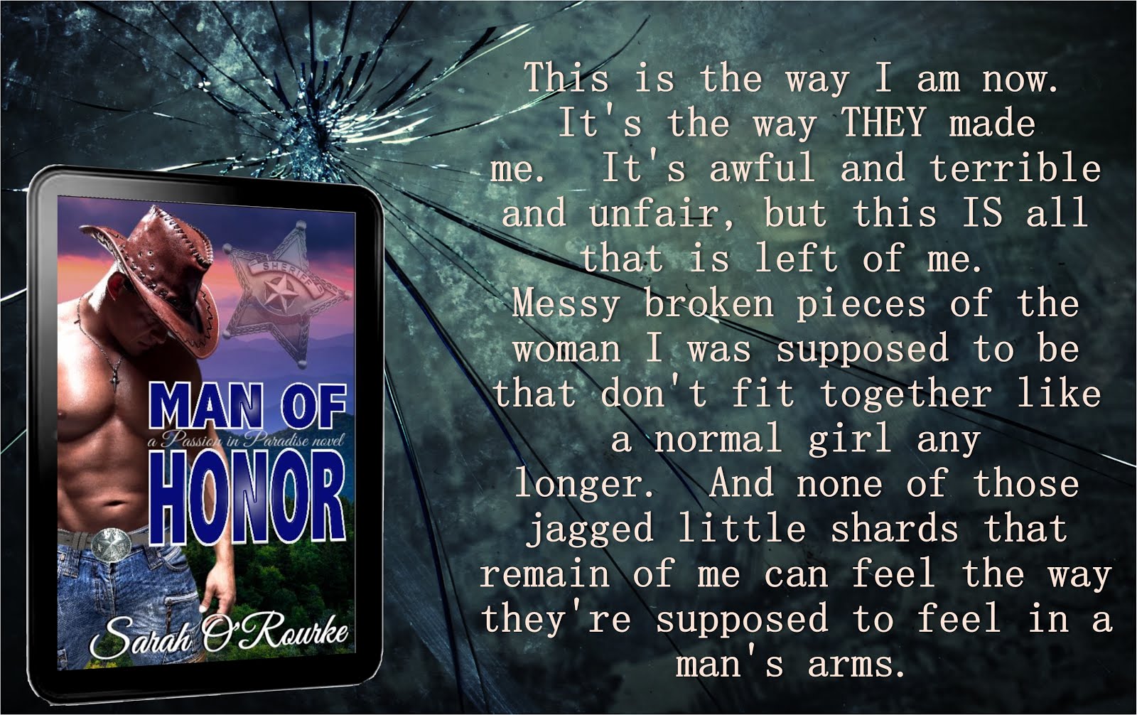 “Bullshit. Every single one of those marks remind me of one thing, Honor. One,” he growled, holding up a finger between them. “You lived. You survived. When all the odds were stacked against you, you defied modern medicine and every one of those damned doctors predictions, and you lived. And all those scars will ever do is remind me of how lucky I am to still have you. Don’t you ever tell me you’re ugly because you’re the most beautiful thing in my world. You wanna be scared to share your body with me because of what happened to you? I get that. I can accept that. But worrying about some marks on your flesh? I love you, baby, but that’s insane.”