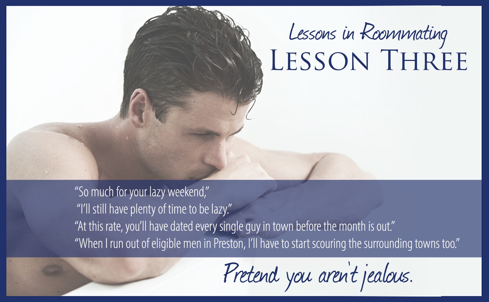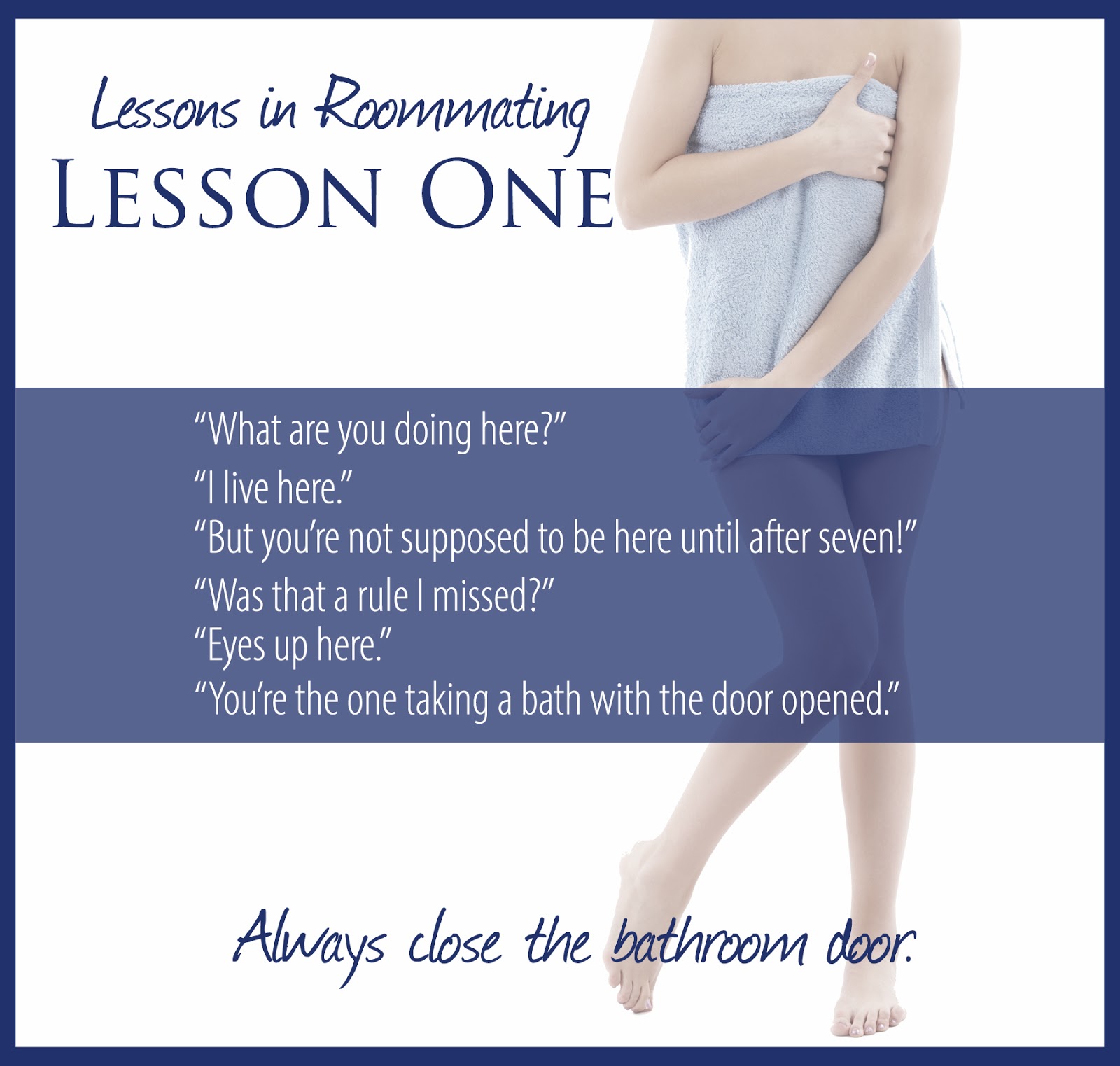 “Was that a rule I missed?” His voice was dry and gruff, as usual, but he was decidedly distracted, his eyes raking over her bare dripping legs and the damp towel.