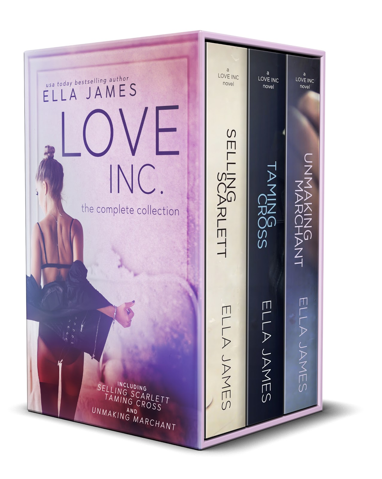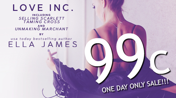 A limited time romantic suspense box set from USA Today bestseller Ella James!Get all three internationally bestselling Love Inc. novels in a bundle for the first time ever. This is a limited-edition box set available only for a few weeks, in celebration of the upcoming re-release of Something Blue, the final book!