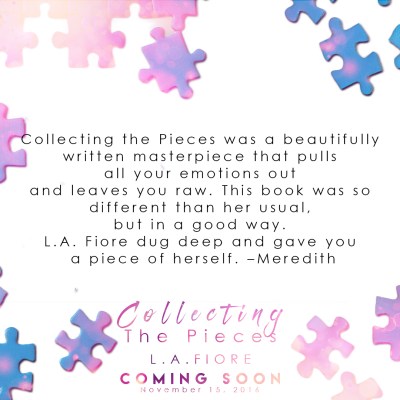 L.A. Fiore is the author of several books including: Beautifully Damaged, Beautifully Forgotten, Beautifully Decadent, His Light in the Dark and A Glimpse of the Dream. She’s also the social secretary for her two children, a tamer of ill-mannered cats, the companion to one awesome dog and married to her best friend. She likes her wine red, her shrimp chilled and her social gatherings small and intimate.