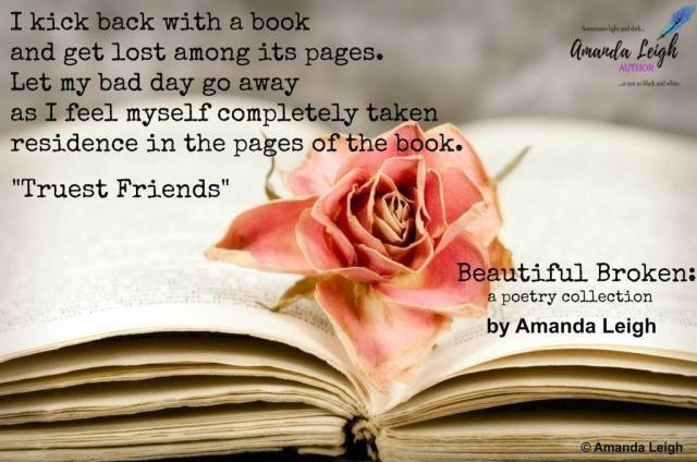 Amanda Leigh has had a love of words since before she could write them herself. Once she learned to read and write herself she just couldn’t stop. She reads any genre as long as the book sounds interesting. Which may explain why she can’t and never will be able to stick to one genre in her writing. From Contemporary Romance to Women’s Fiction to Paranormal Romance to Poetry and more to come. When she’s not writing or reading she enjoys getting swept away in a great TV show, going to the theater, listening to music, cooking and many different forms of art. She has a cat she adores and also loves Psychology, tea, coffee and chocolate.