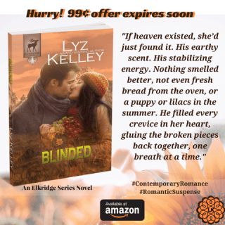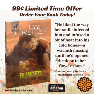 My Elkridge Series is a puzzle. In book 1, BLINDED, Sheriff Sam is murdered. It will take 6-books to solve the crime. Word of caution: There are some red herrings throughout the series. Solving the crime will not be easy, and you don’t have to wait long. All books will be launched in 2017. If you like sensual romances, with deep emotional topics, threads of suspense, and a happy-ever-after then BLINDED, a stand-alone love story in the Elkridge Series, is for you. Let the mystery begin. ~Lyz Kelley~